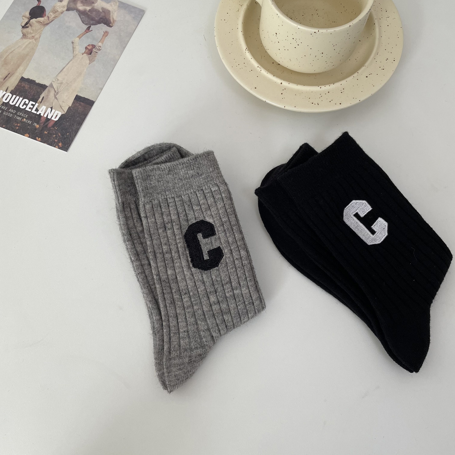 Носки Jio Socks Spring и осень маленькая красная книга сеть красная шерсть c буквы корейский теплый хлопковый носок сплошной цвет толстый прилив