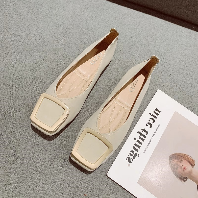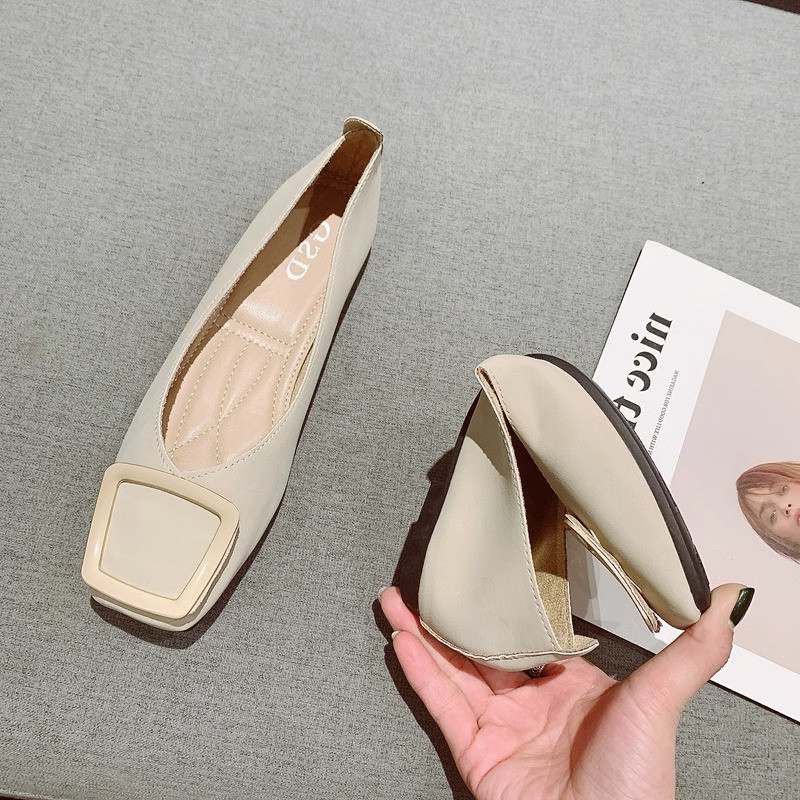 Little Ckerwin Retro Square Head Soft Bottom Bean Shoes 2023 Новая простой универсальная металлическая квадратная пряжка плоская одиночная обувь