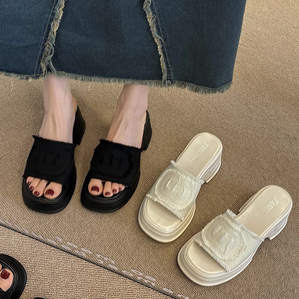 Слайдеры, летние тапочки, высокие сандалии на платформе, в стиле Шанель, коллекция 2023
