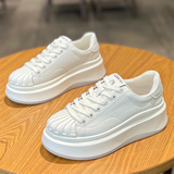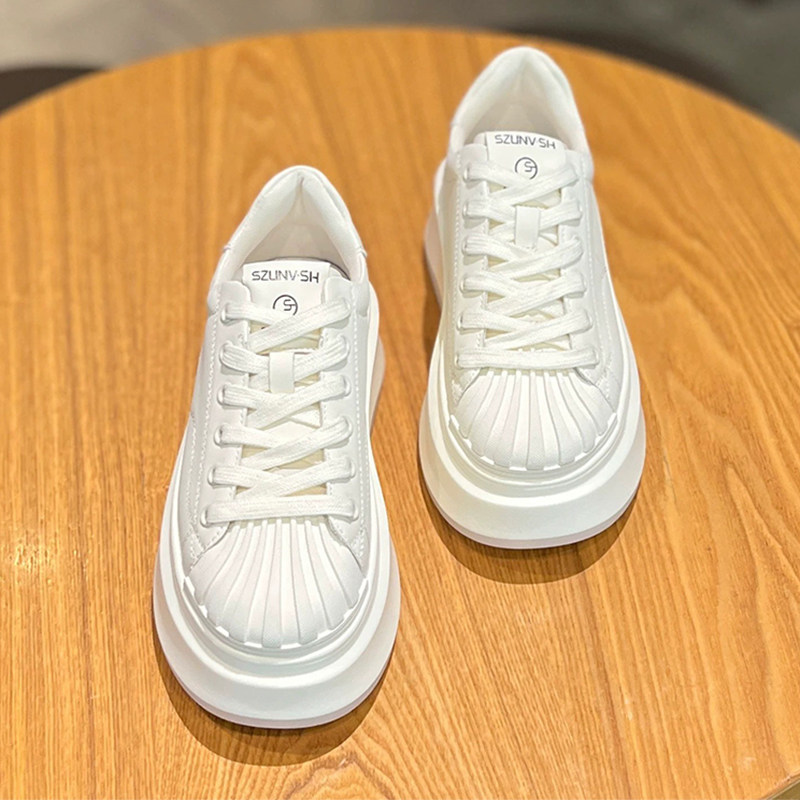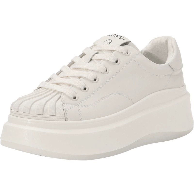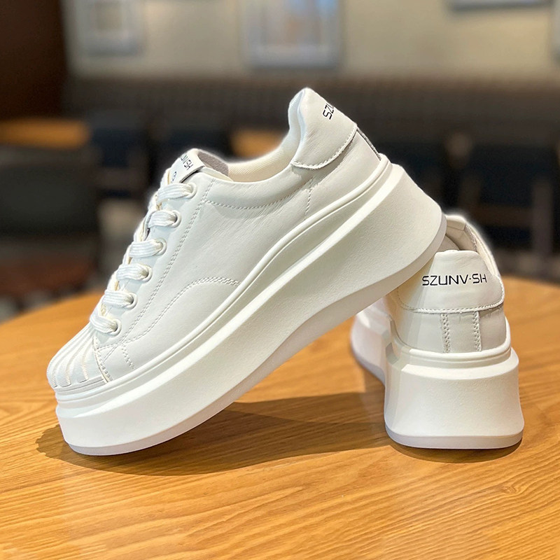 Высокая белая обувь на платформе, кроссовки, из натуральной кожи