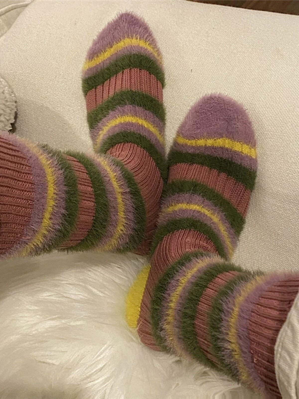 - 2 пары [пушистая строчка розовый + хаки]