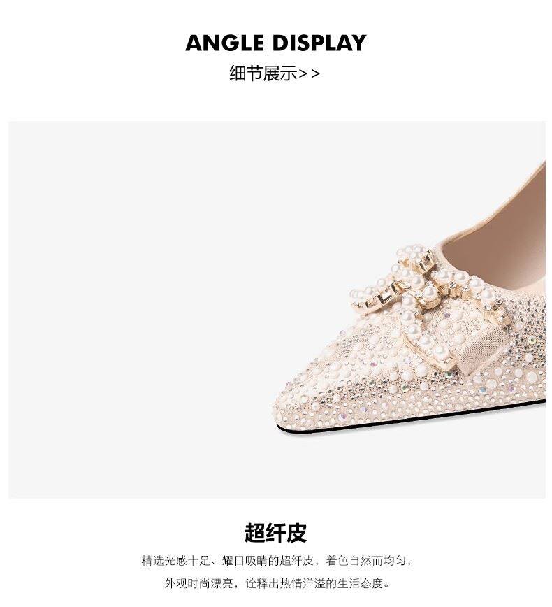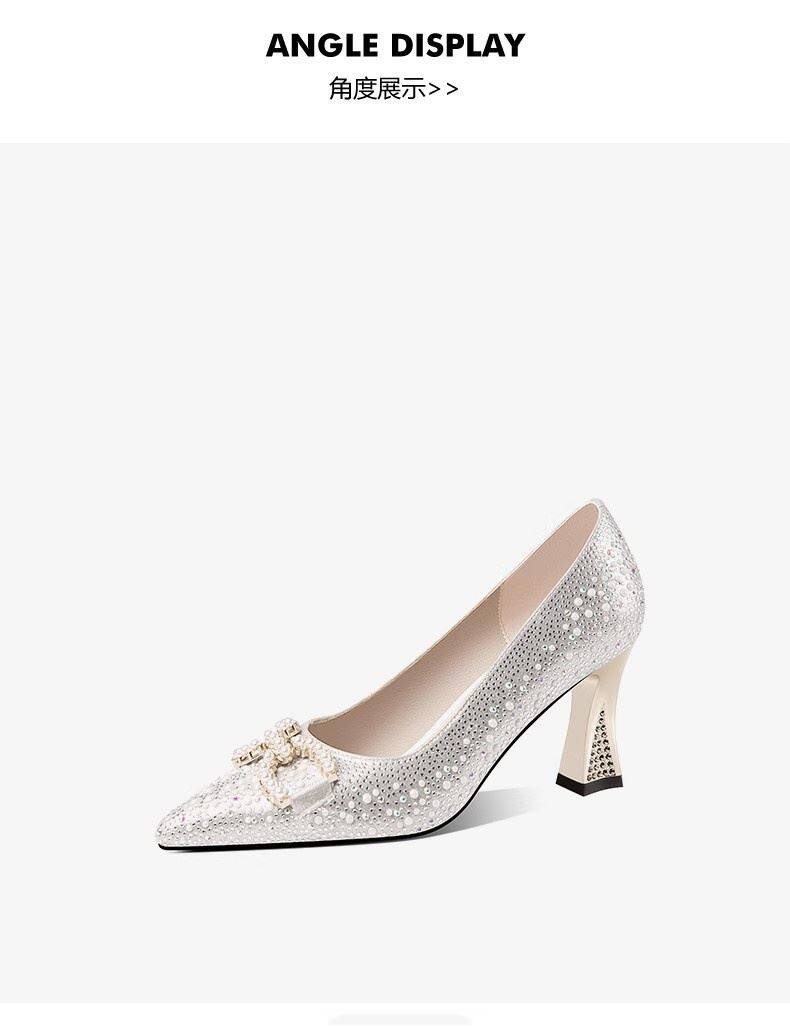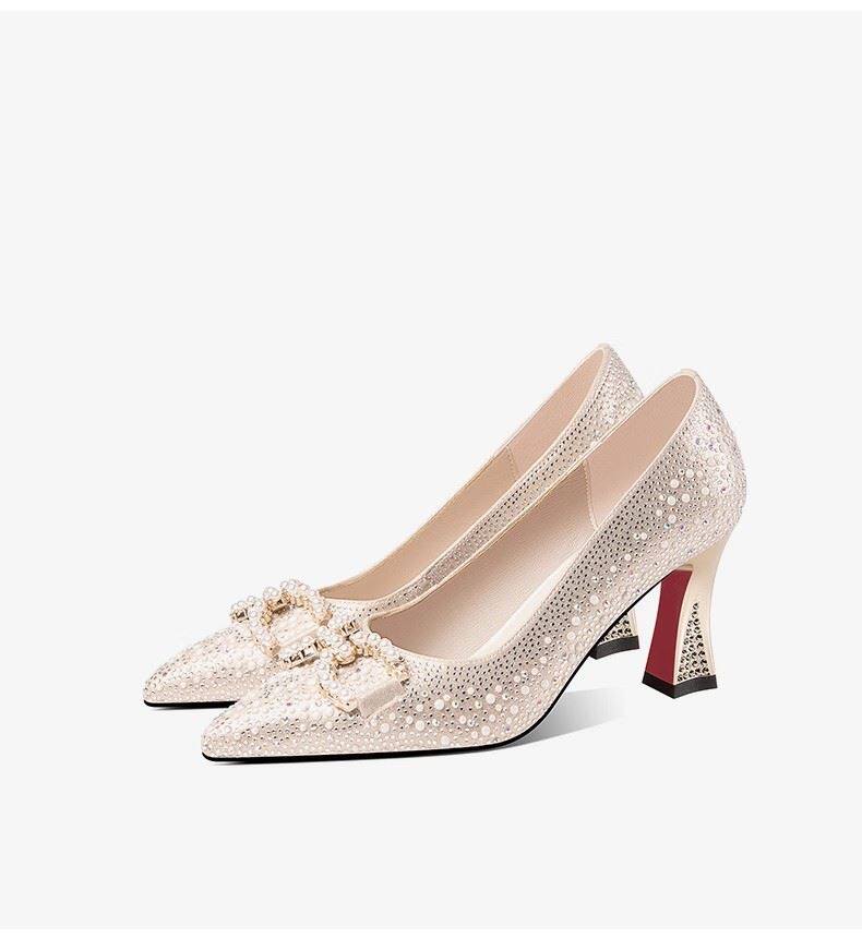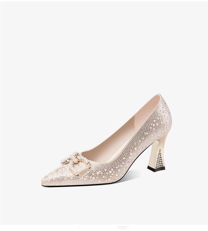 Ноги превосходны, удобны и нежны ~ легкие рот одиночные туфли 2024 Новые женские острые жемчужно -жемчужные туфли густой и свадебные туфли