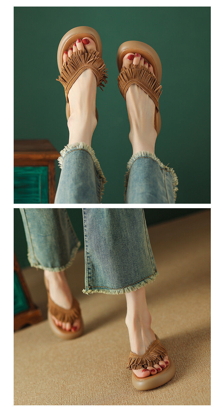LUSS UOSO [Итальянская легкая роскошь] ⭐ ⭐ ⭐ ⭐ ⭐ L 4 см кожаные токи Сандалии и тапочки.