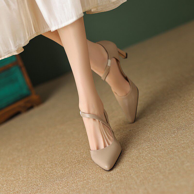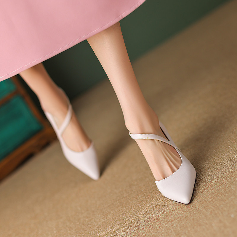 Нюдовые белые туфли на высоком каблуке на высоком каблуке с заостренным носом, Италия, из натуральной кожи