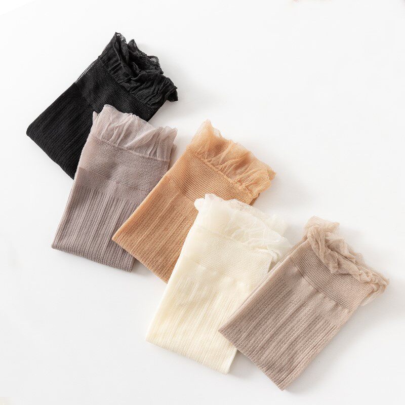 Колготки, летние стеклянные ультратонкие тонкие нескользящие носки, средней длины