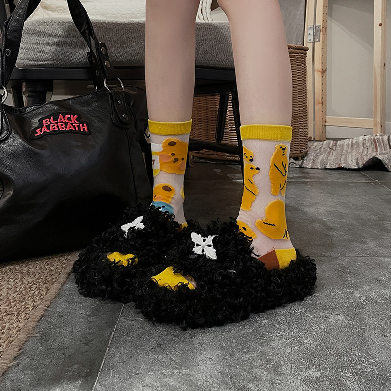 Асимметричные летние тонкие дышащие мультяшные стеклянные колготки для влюбленных, средней длины