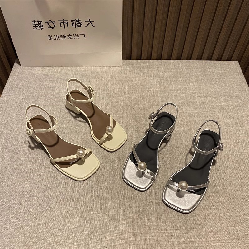 Сандалии Little ckerwin в сказочном стиле с открытым носком и жемчугом, новинка 2024 года, летние стильные универсальные туфли с ремешком с пряжкой в одно слово, темпераментные высокие каблуки