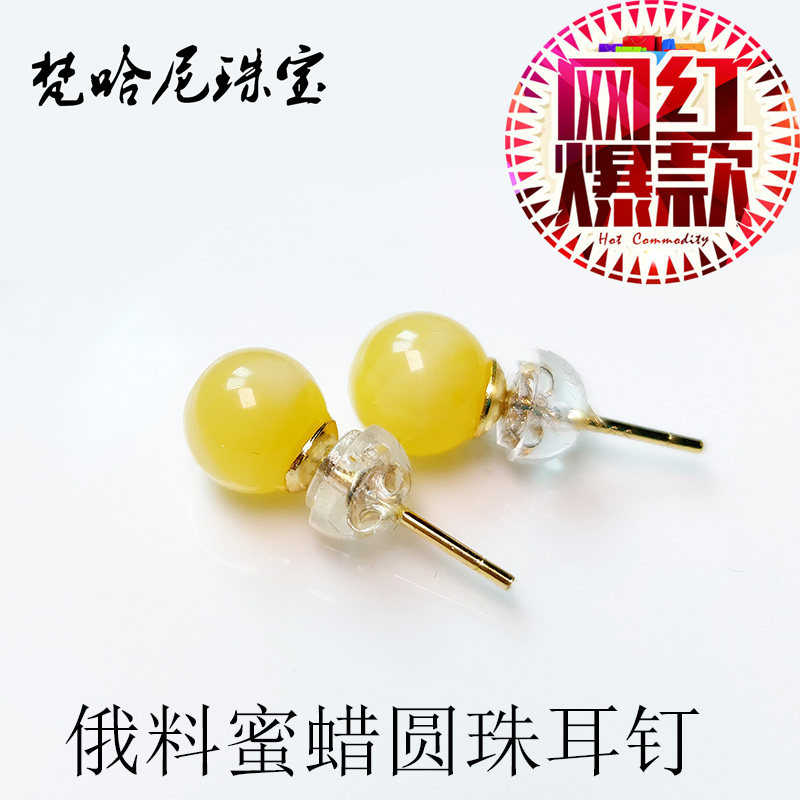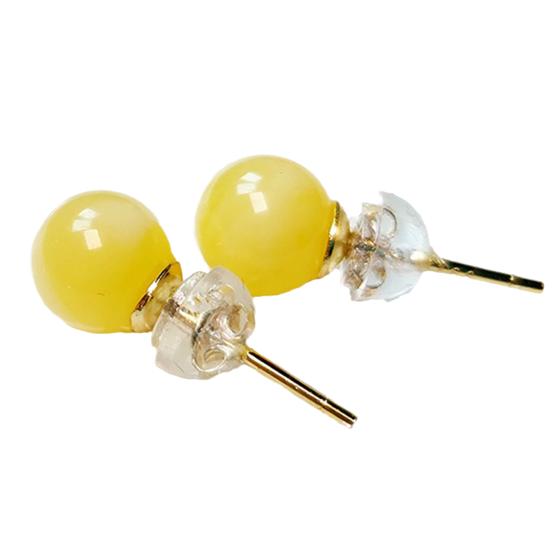 Натуральные янтарные серьги из воскового агата, украшение-шарик, маленькое ювелирное украшение, женский стиль, серебро 925 пробы, золото 750 пробы