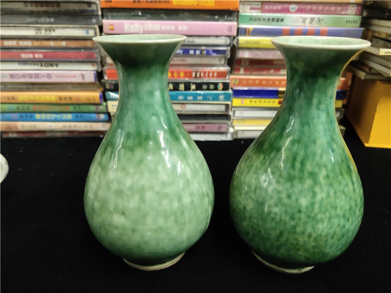 Пара бутылок с зеленой глазурью в династии Цин