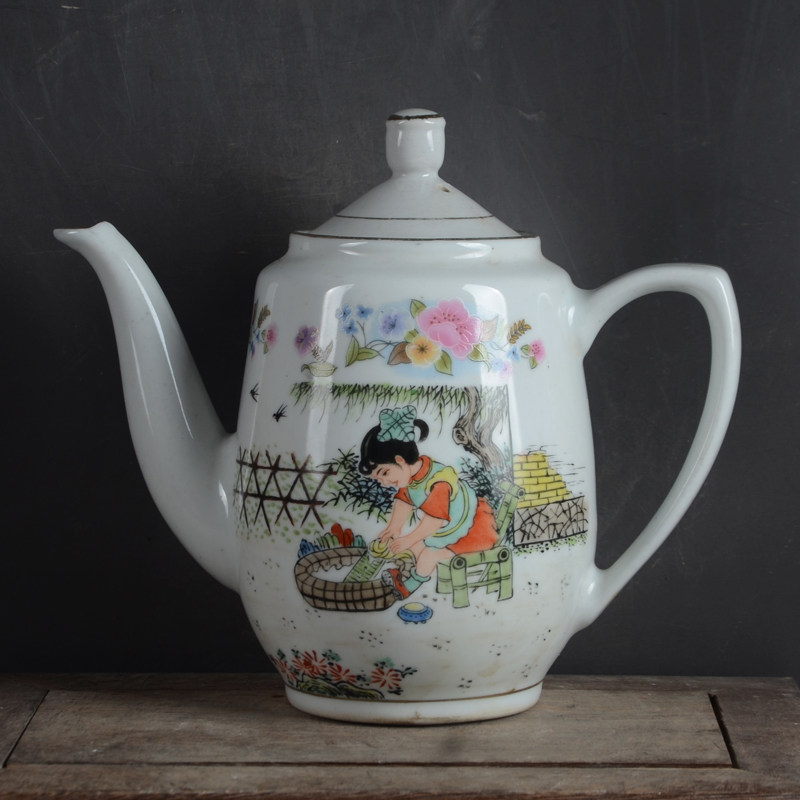 Цзиндэчжэньская фабрика, фарфоровая тема, ручная роспись, пастельные украшения для чайника и винного горшка с фигурками любви к Родине и любви к труду.