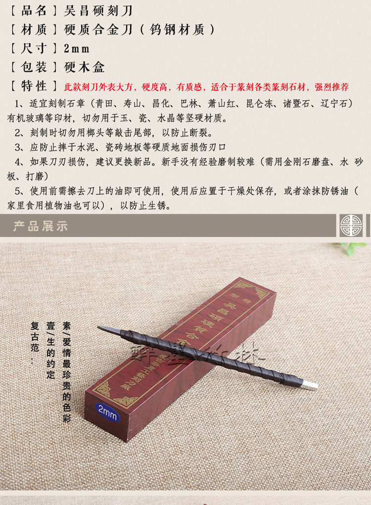 Подлинный выгравированный нож Wu Changshuo 2 мм жесткий сплав вольфрамовый стальной уплотнение.