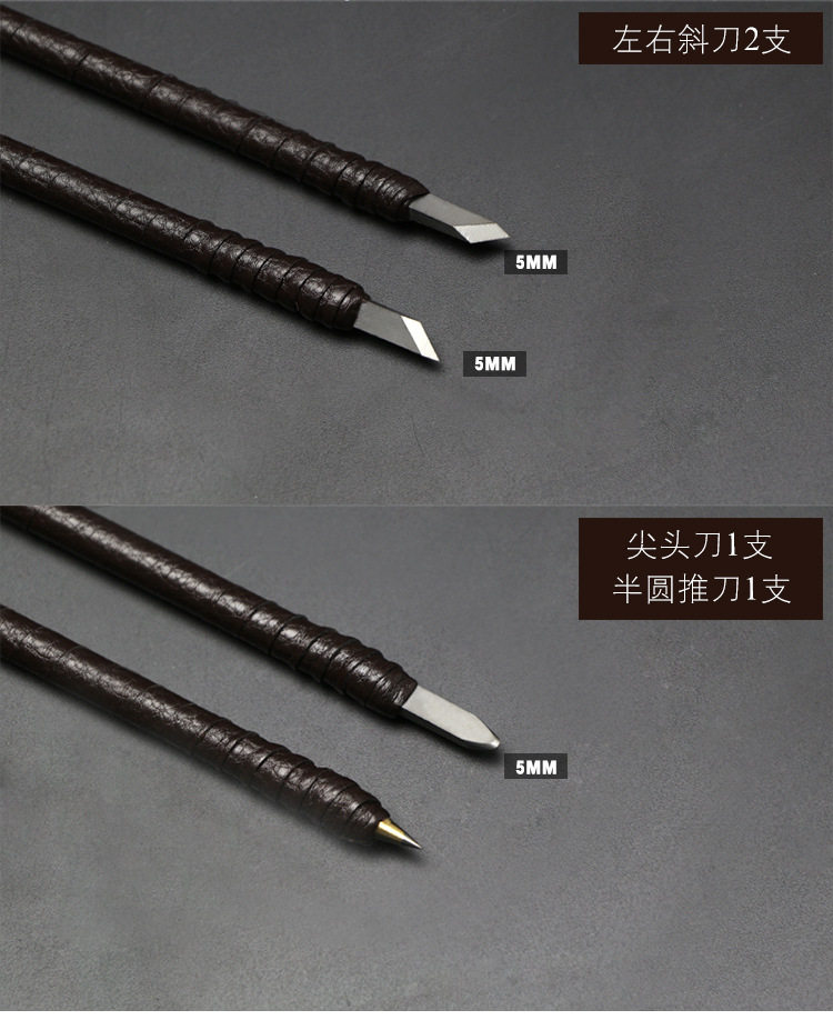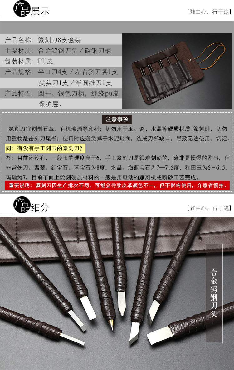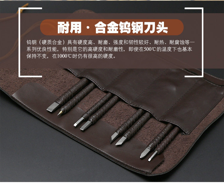 Набор включает в себя восемь резных ножей, доставляется одна кожаная сумка