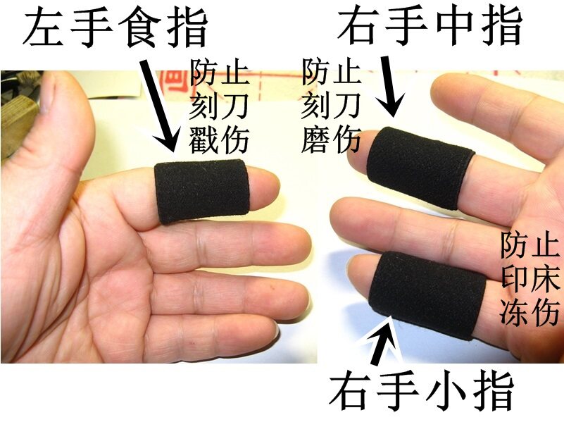 При гравировке удерживайте нож в правой руке, измельчите средний палец и резной нож, и мизинец контактирует с холодной медной печатью.Особенно зимой,Это было долго,Мизинец болен и онемен, боль в суставах, средний палец искажен, и ваш палец должен быть защищен!
