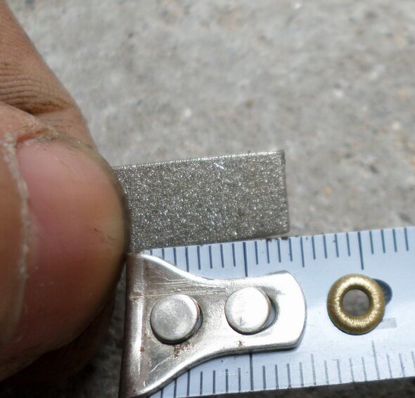 Третий шаг, используйте прямую линейку, чтобы добраться до внешнего конца среднего вала, и измерьте размер квадратной поверхности среднего вала на внешнюю часть стоматологической пластины!