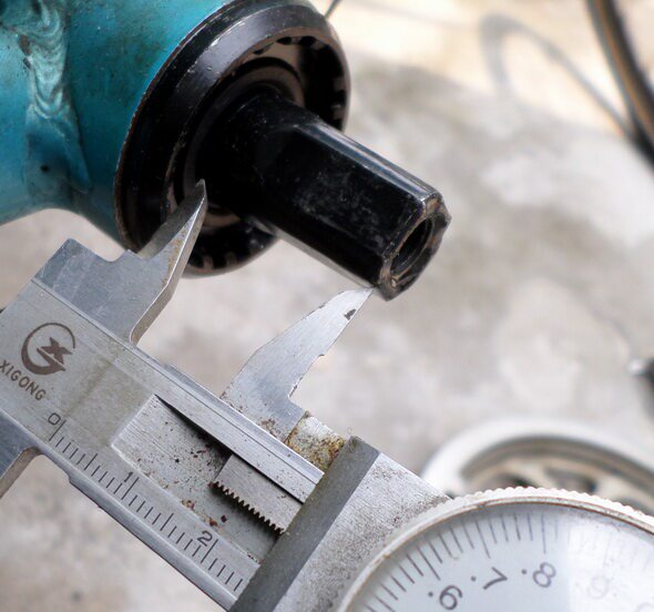 Шаг 4: затем измерьте эту длину, мы видим, что она 14 мм   Затем мы потеряем 14 мм, которые мы только что вышли, а оставшийся размер - это длина среднего вала, который составляет 25 мм.