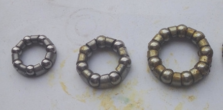 Внешний диаметр средней оси несет 3,8 см1:Внешний диаметр составляет около 3,8 см. Внутренний диаметр около: 2,4 см ----- семь стальных шариков, Диаметр мяча около 7,9 мм