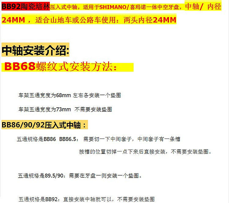 Gub Shimano Ceramic резковая резьба центральный вал BB86 BB90 BB92 BB91 Центральное давление вала