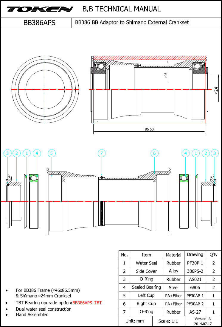 PF30 (ширина шириной 86,5 мм) Пятипроходная установка Shimano 24 -мм средняя пропускная способность