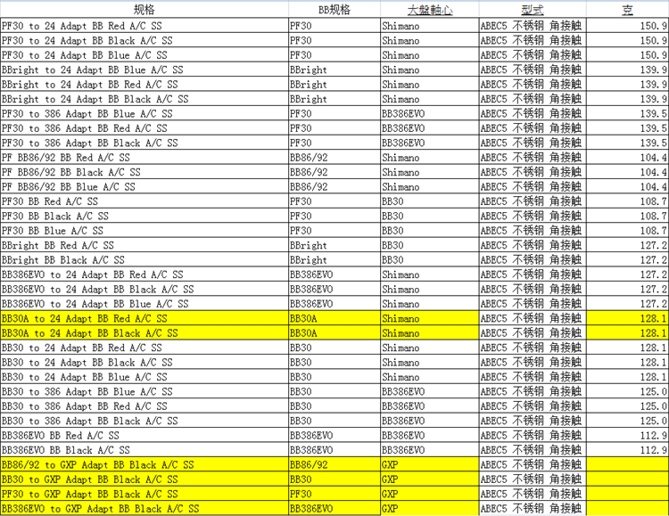 - BB30 до GXP Black