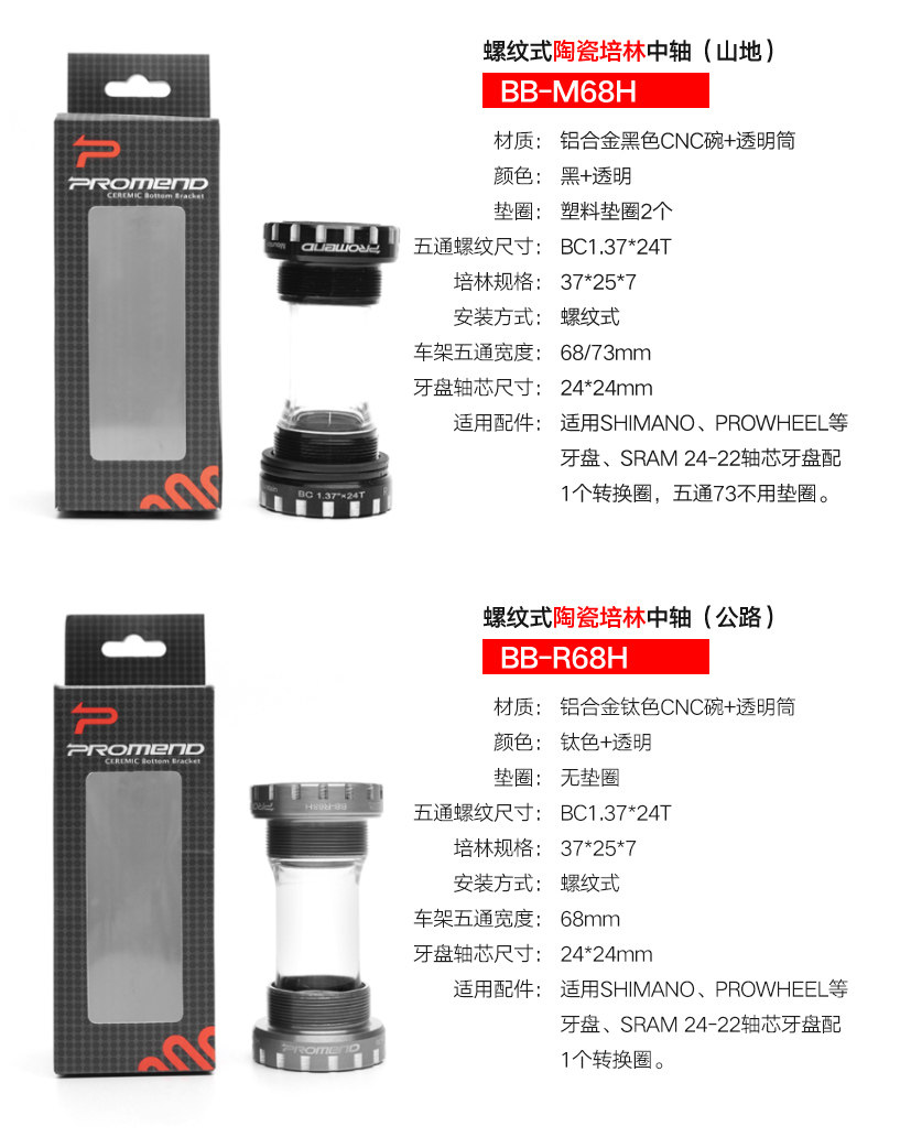 Пустотелая велосипедная каретка, 68mm