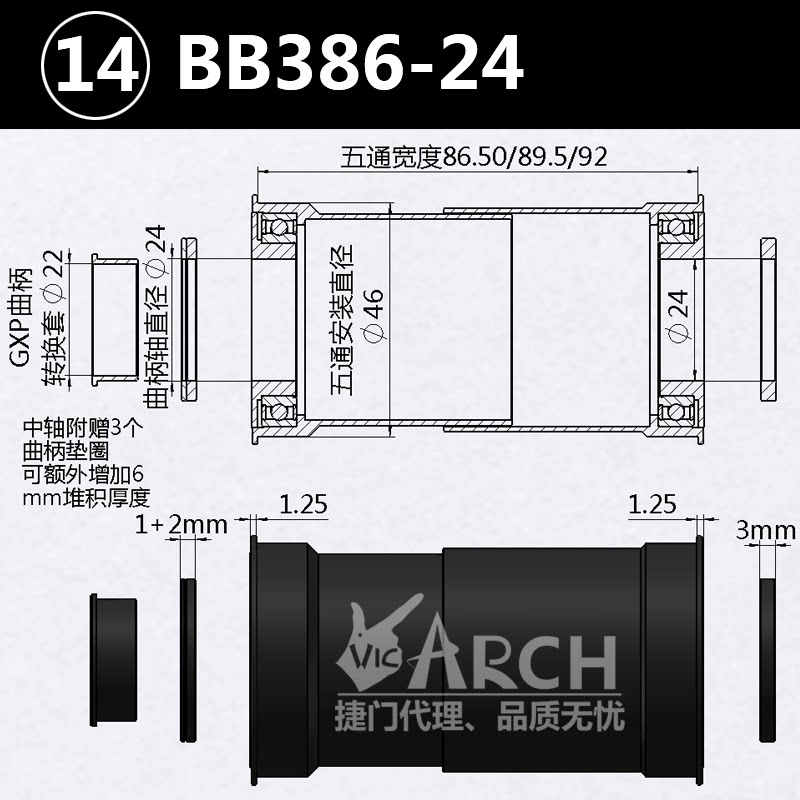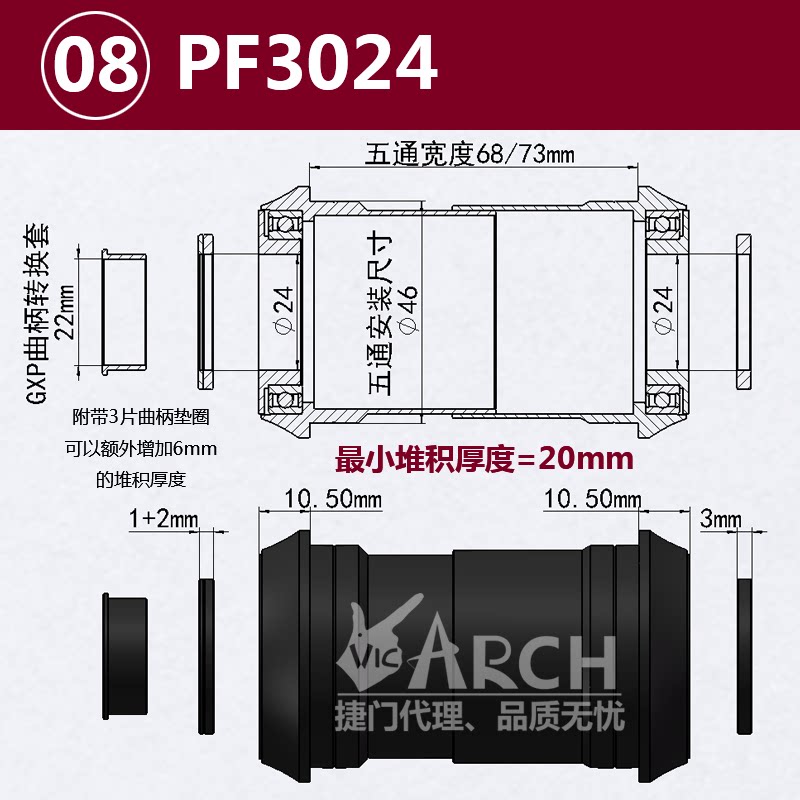 PF3024 Подходит для полного диапазона стоматологических лотков Шимано, спецификаций SRAM GXP или горных стоматологических лотков, Rotor 3D24, Aldhu24 зубной лотки.И другие бренды диаметра сердца оси 24 мм зубного лотка.