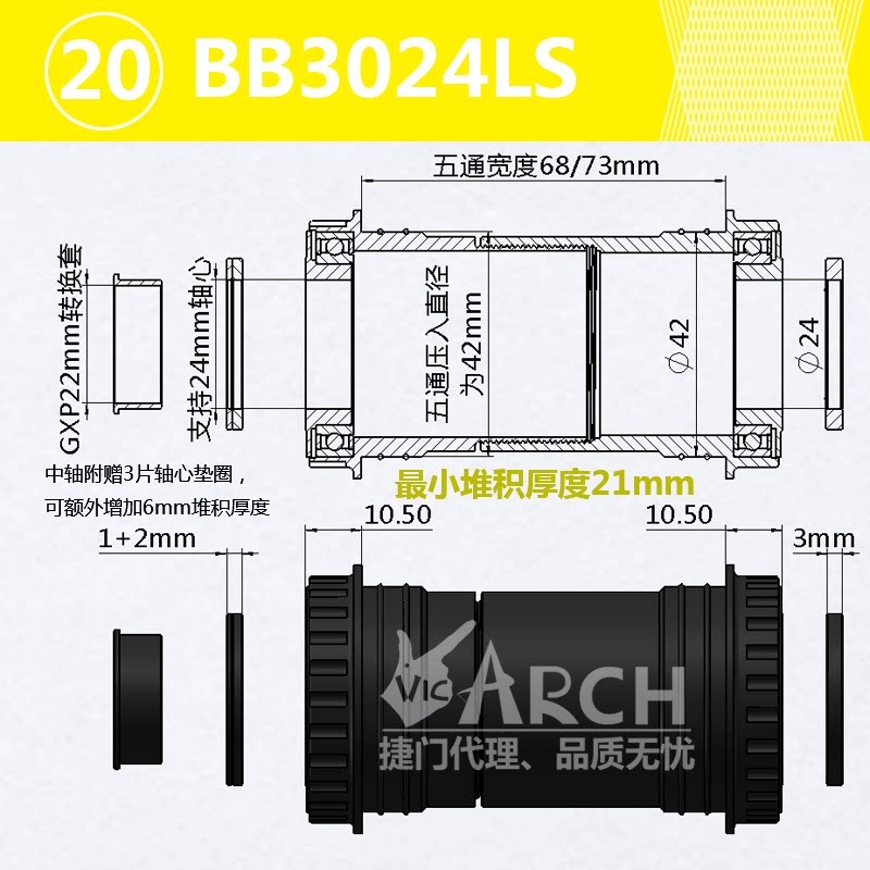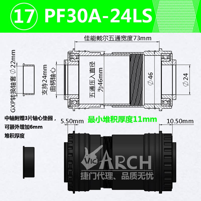 PF3024LS Подходит для полного диапазона стоматологических лотков Шимано, спецификаций SRAM GXP или горных стоматологических лотков, Rotor 3D24, Aldhu24 зубной лотки.И другие бренды диаметра сердца оси 24 мм зубного лотка.