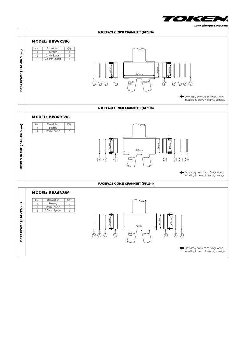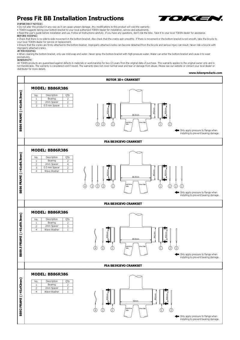Token Tukens BB41 BB8630 Средний вал. Нажатие среднего вала BB86 BB92 Перенос PF30 PF386 Зубная пластина