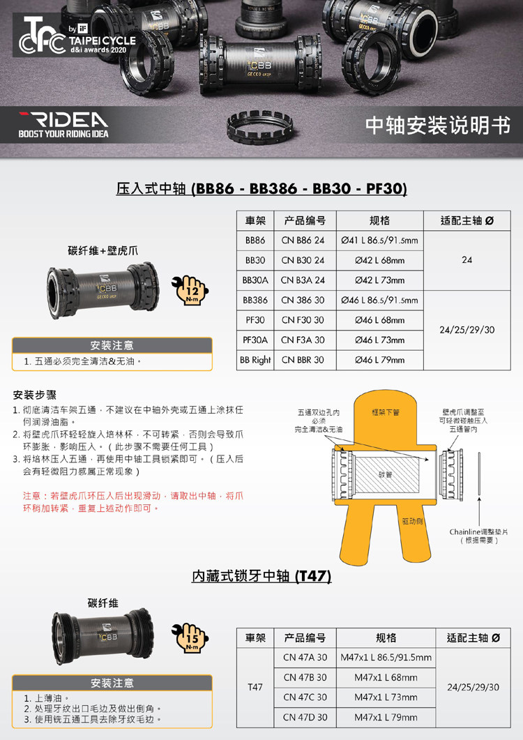 Тайвань Didea Ruiyida Carbon Fiber Mountain Road Ceramic Mid -shaft BSA24/BB86/ITA/T47 68 грамм