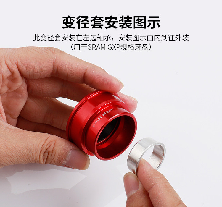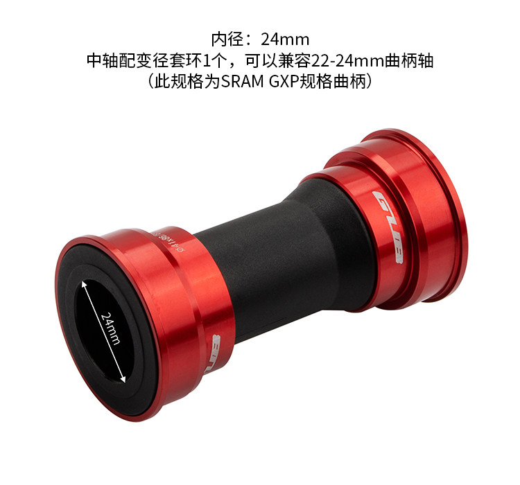 Оснащен 1 переходным кольцом, совместимым с коленчатым валом диаметром 22–24 мм (эта спецификация соответствует кривошипу спецификации SRAM GXP).