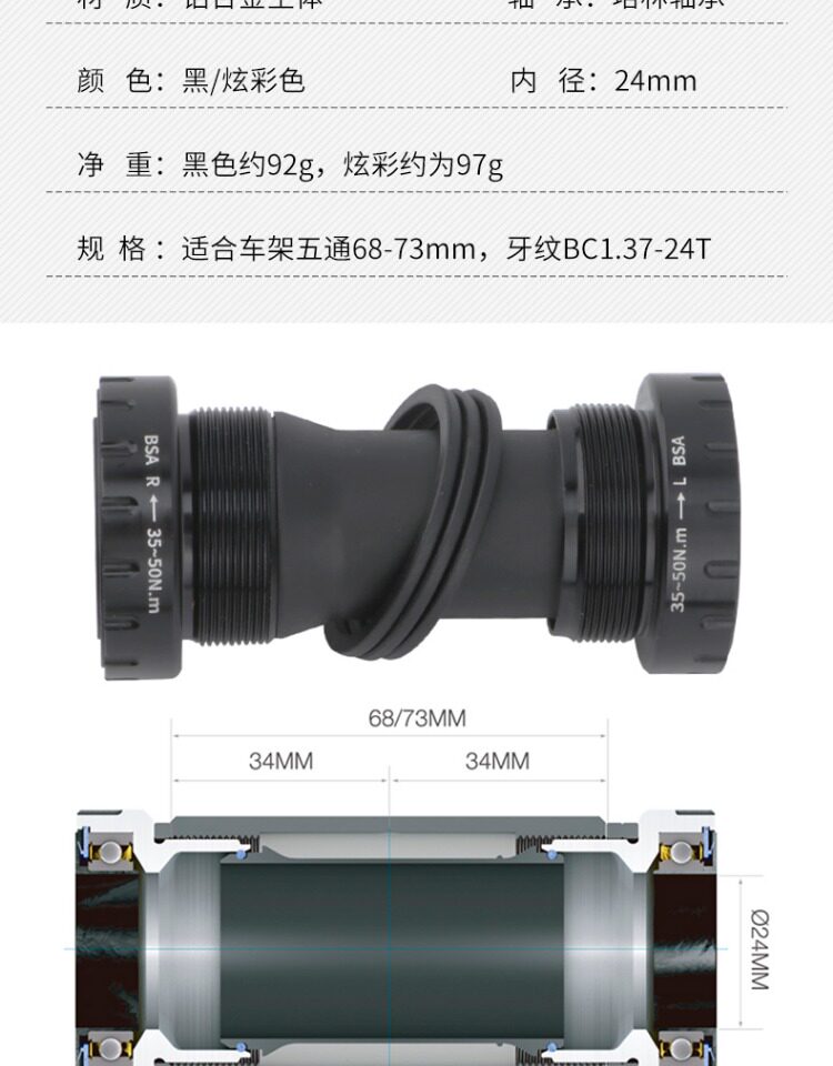 Горная велосипедная каретка, складной велосипед, пустотелый подшипник, 73mm
