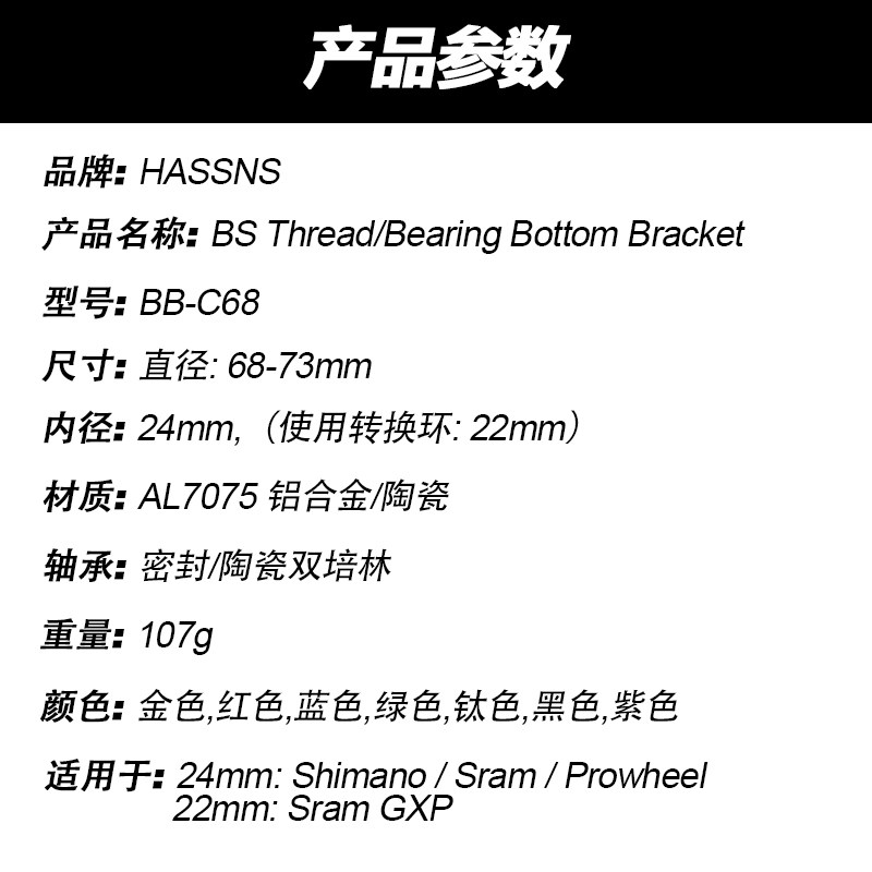 Шесть -летний магазин 16 цветов Hassns Mountain Highway Carul Ceramic Peilin интегрированный полый BB Центральный шахта с пирсинговым валом вращение.