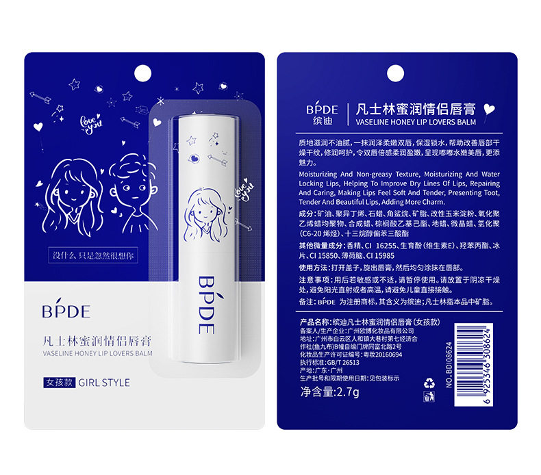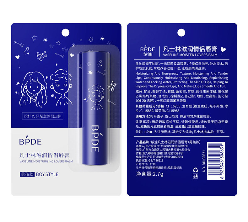 缤迪 Питательный вазелин, увлажняющий бальзам для губ, базовая демисезонная защитная помада подходит для мужчин и женщин, для влюбленных, против трещин
