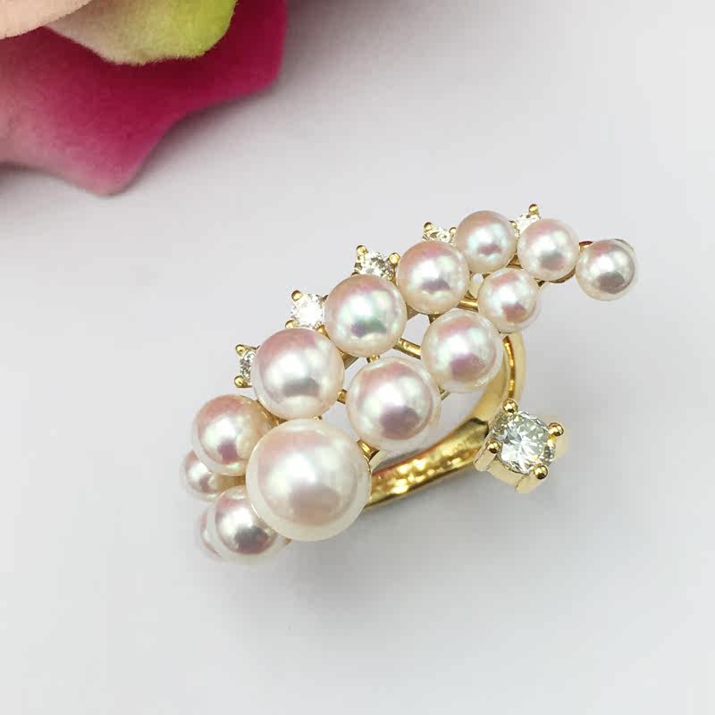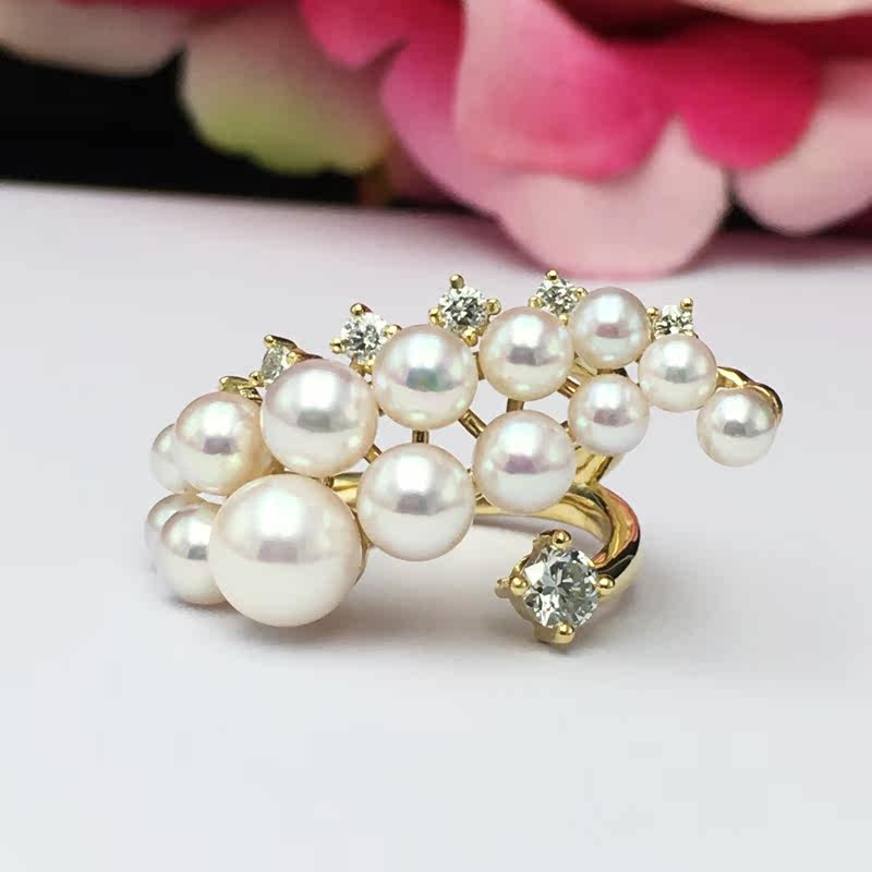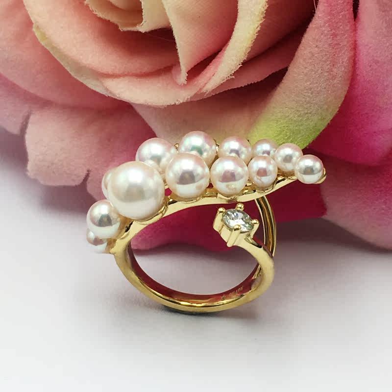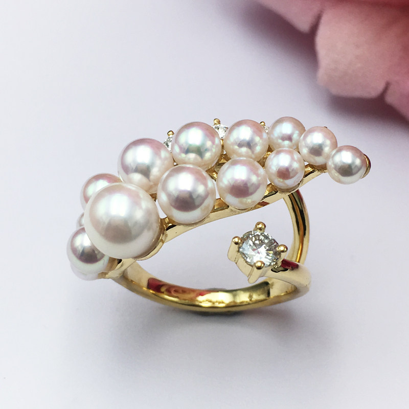 Японская инкрустация камня, обручальное кольцо из жемчуга, золото 750 пробы