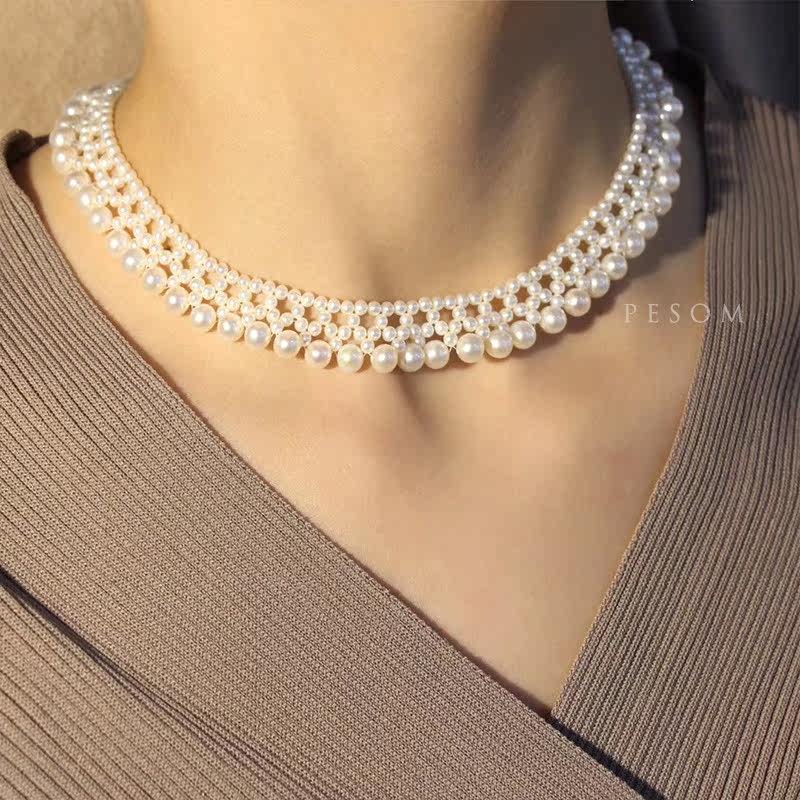 Натуральное ожерелье из жемчуга ручной работы, плетеная элегантная цепочка