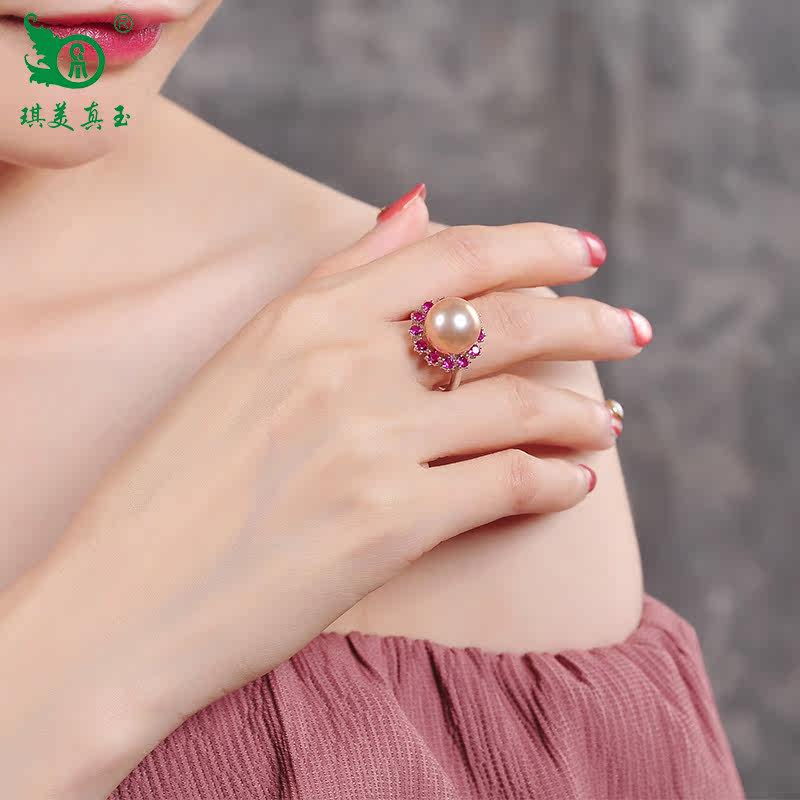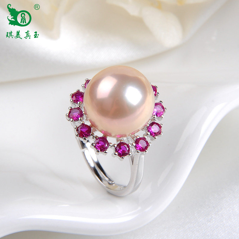 琪美真玉 Модное элегантное искусственное кольцо из жемчуга для матери, серебро 925 пробы