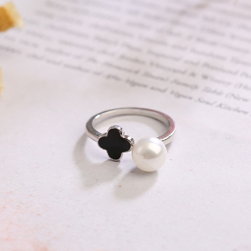 Универсальное натуральное кольцо из жемчуга, простой и элегантный дизайн, серебро 925 пробы, четырехлистный клевер, на указательный палец, подарок на день рождения