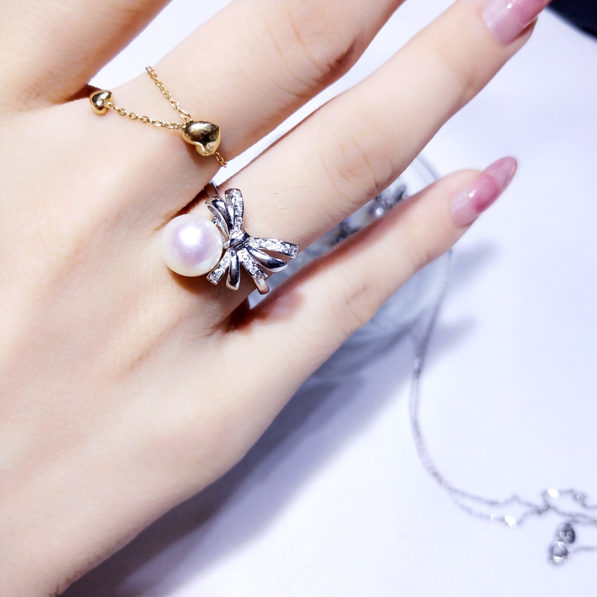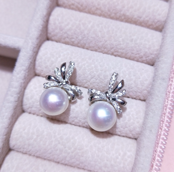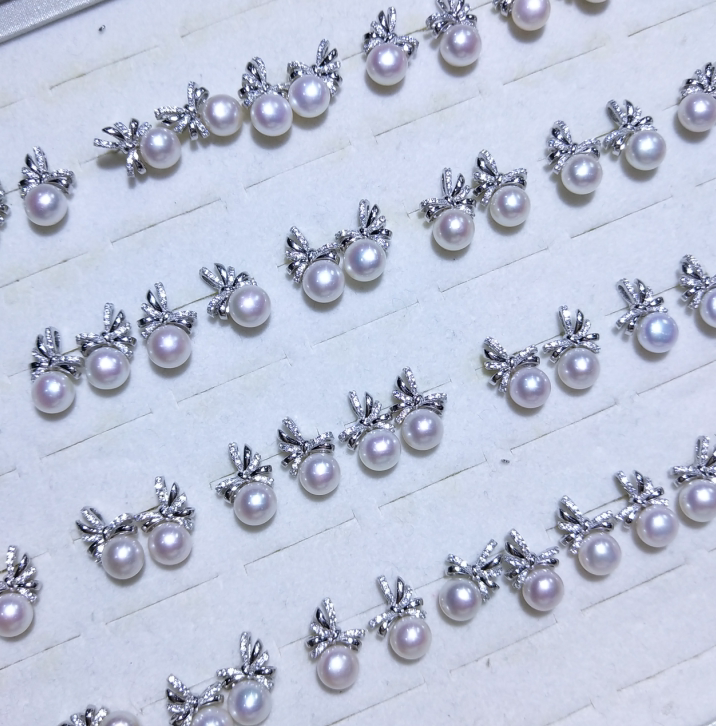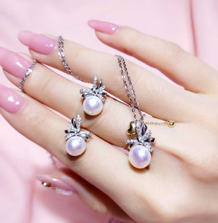 Японский натуральный комплект с бантиком, серьги из жемчуга, подвеска, ожерелье, серебро 925 пробы