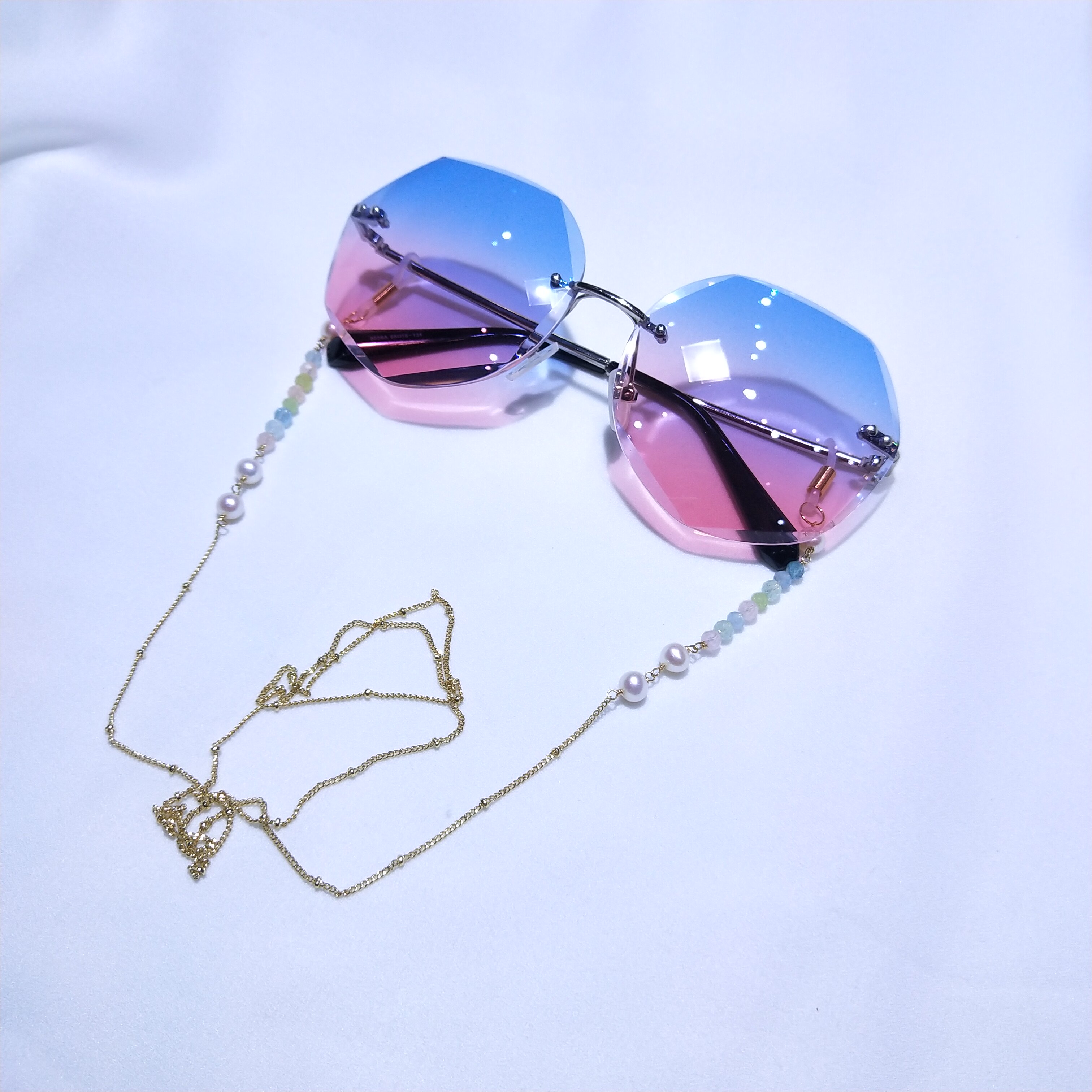 Солнцезащитные очки, ретро модная цепь, натуральный нескользящий ремешок из жемчуга, простой и элегантный дизайн