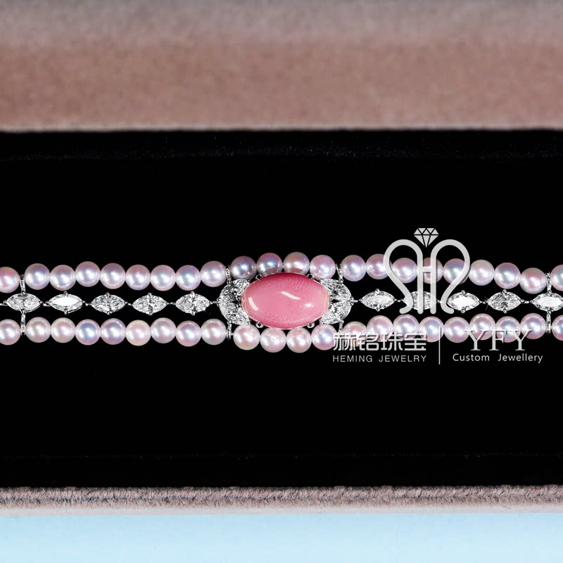 Ювелирное украшение, браслет из жемчуга, инкрустация камня, делается под заказ, с драгоценным камнем