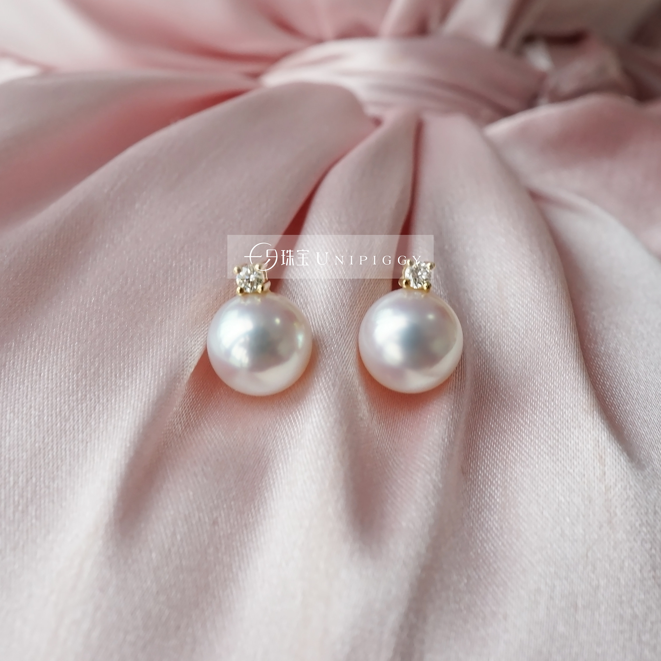 Японские натуральные бриллиантовые серьги из жемчуга, золото 750 пробы