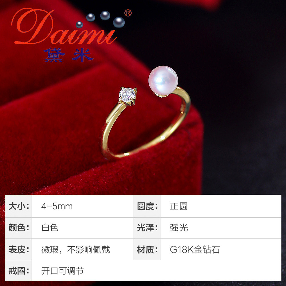 黛米 Ювелирное украшение, безразмерное кольцо из жемчуга, 5mm, золото 750 пробы