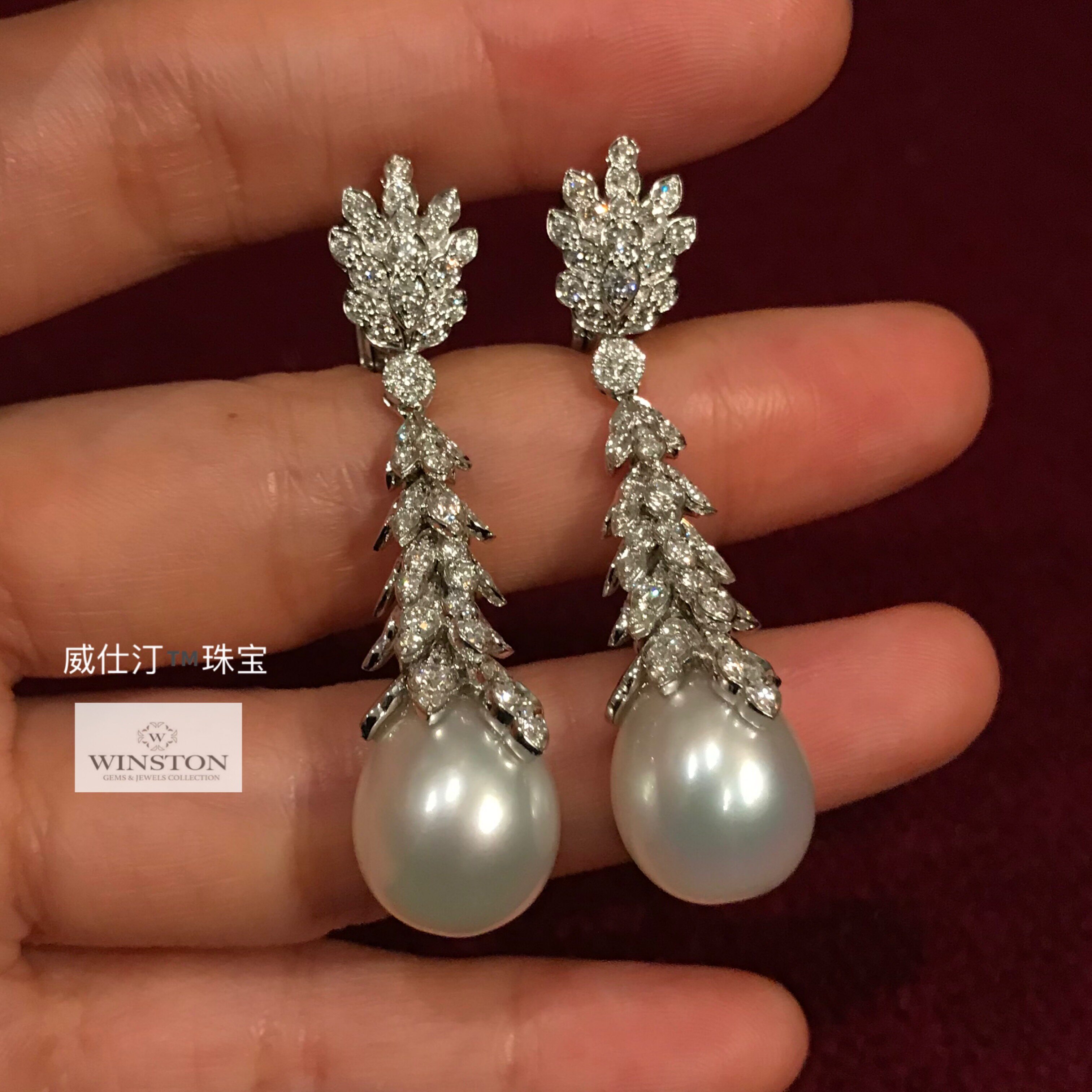 Натуральное ювелирное украшение, бриллиантовые платиновые серьги из жемчуга, белое золото 18 карат