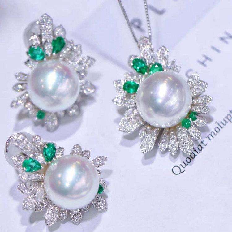 Тяжелая золотая инкрустированная морская вода Австралия и белый жемчуг с изумрудными подвесками - все это неподвластные неподжественные неглубные бриллианты 18 тыс.