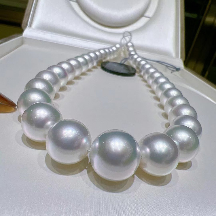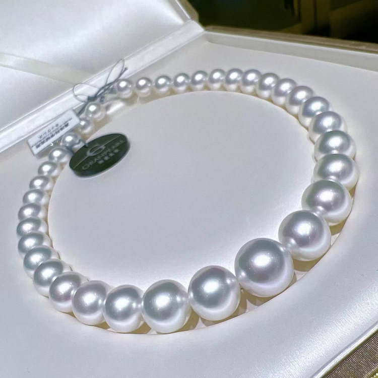 12-14,7 мм Специальный выбор Sea Water Australia и белое жемчужное ожерелье синий холодный цвет синий цвет, полный, полный круглый 0715