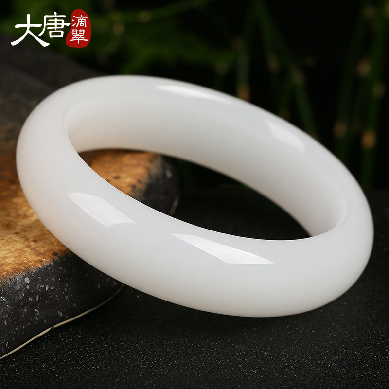 大唐滴翠 Белый браслет из нефрита для матери, женский стиль