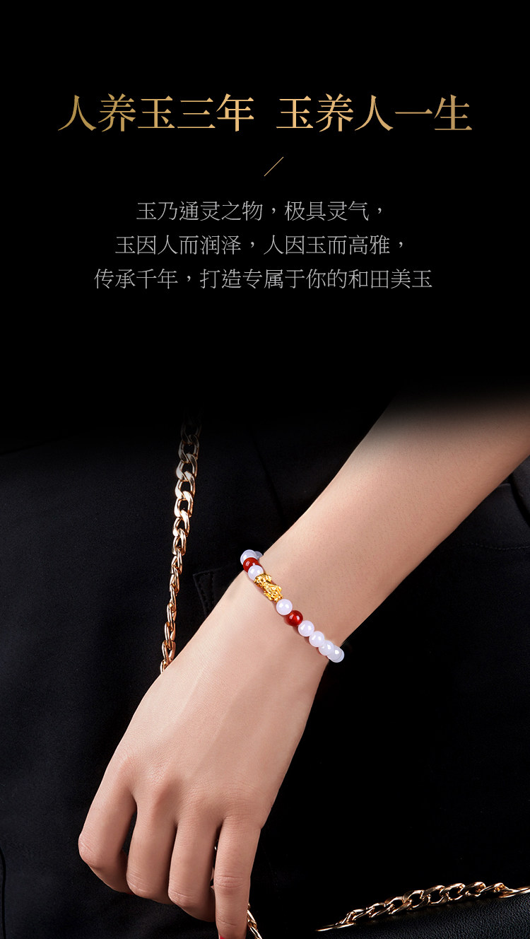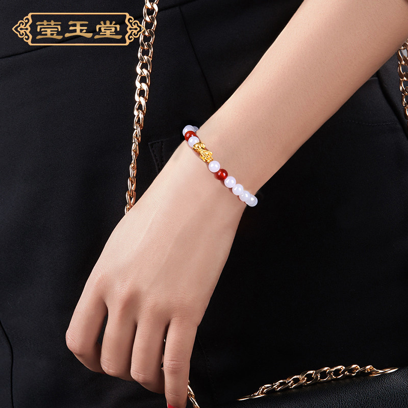 Золотой браслет с одной бусиной, яшма из белого нефрита, на удачу, женский стиль