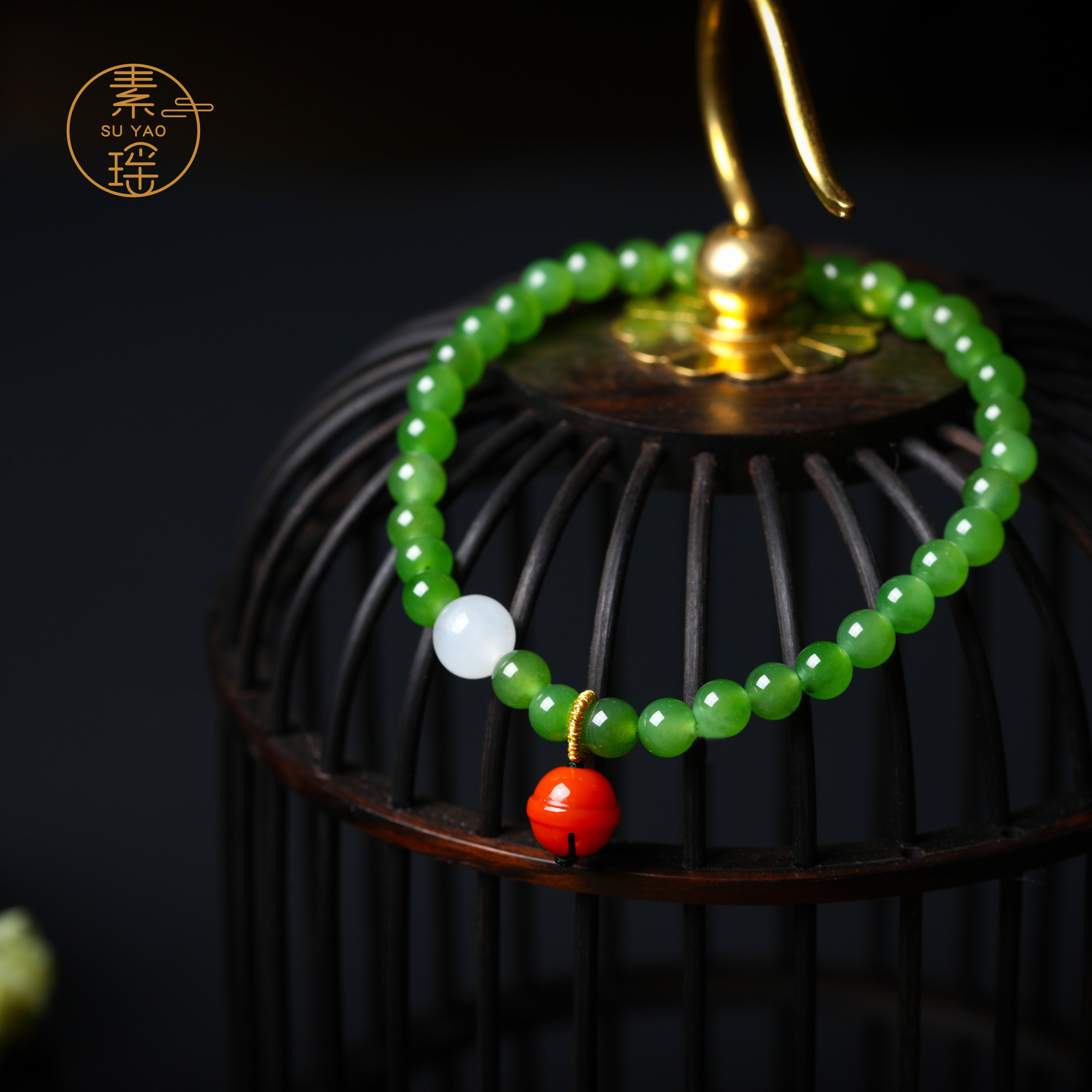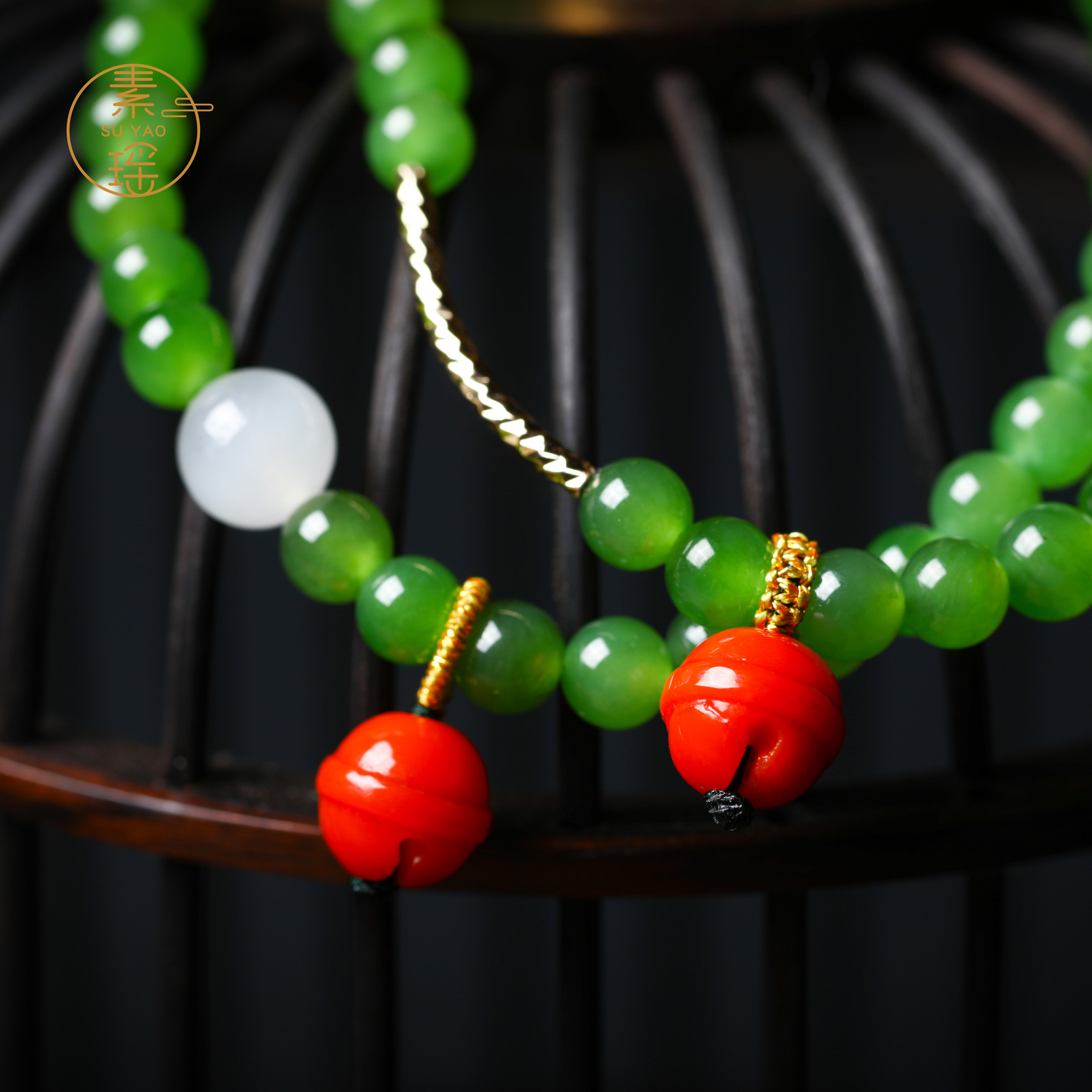 Apple, натуральная яшма, браслет на ногу, красный колокольчик, Россия