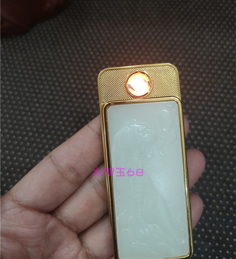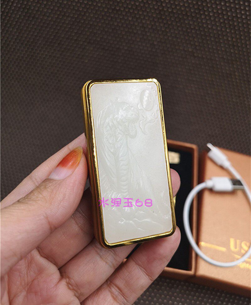 Ретро ветрозащитная зажигалка из нефрита с usb-зарядкой, электронный креативный аксессуар, подарок на день рождения