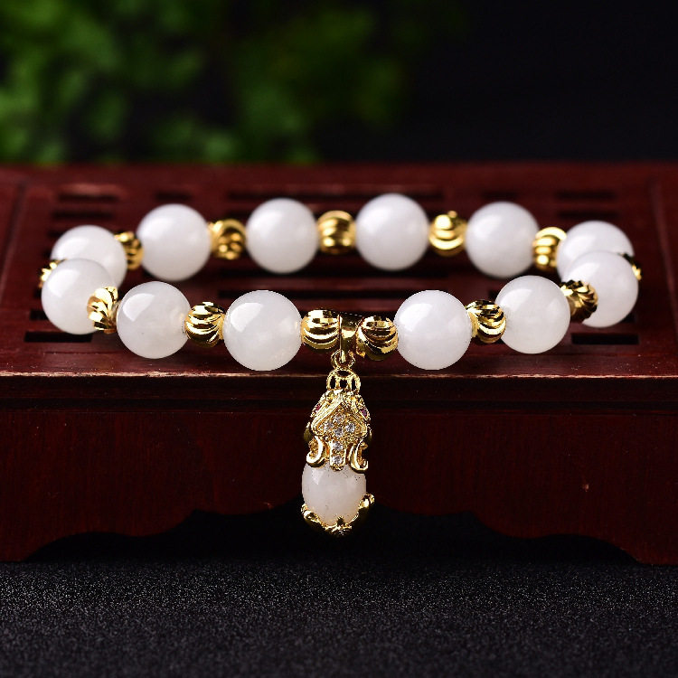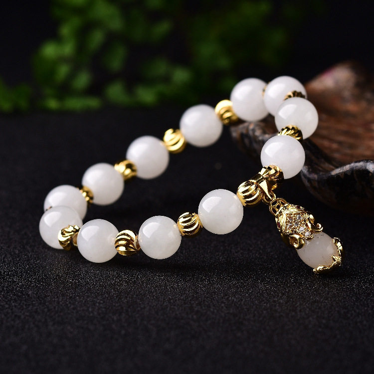 Натуральный браслет с одной бусиной из белого нефрита, бусины, инкрустация камня, яшма, женский стиль