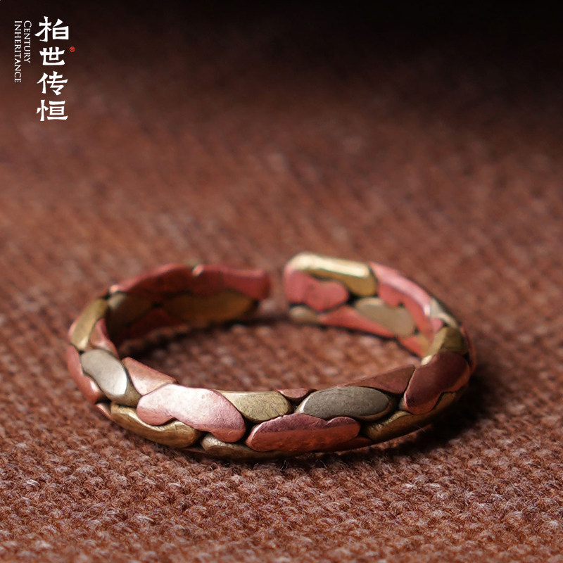 Bai Shi Chuan Heng Boutique Tibetan Laoma Copper Red Copper Brass Woven Ring Специальное мастерство Радуга Радуга